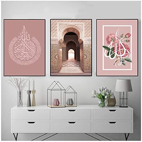 Vova Decor A La Maison Allah Islamique Mur Art Toile Affiche Rose Fleur Ancienne Porte Musulman Imprimer Nordique Decoratif Photo Peinture Moderne Mosquee Decor Non Encadree