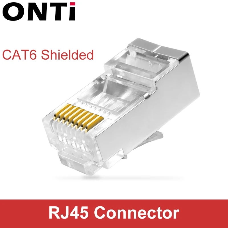 Onti Cat6 Rj45 Connector 8p8c Modular Plug Computer Utp Ethernet Cable Gold Plated Gigabit Network Crimp Shielded Crystal Head Computer Cables Connectors Aliexpress