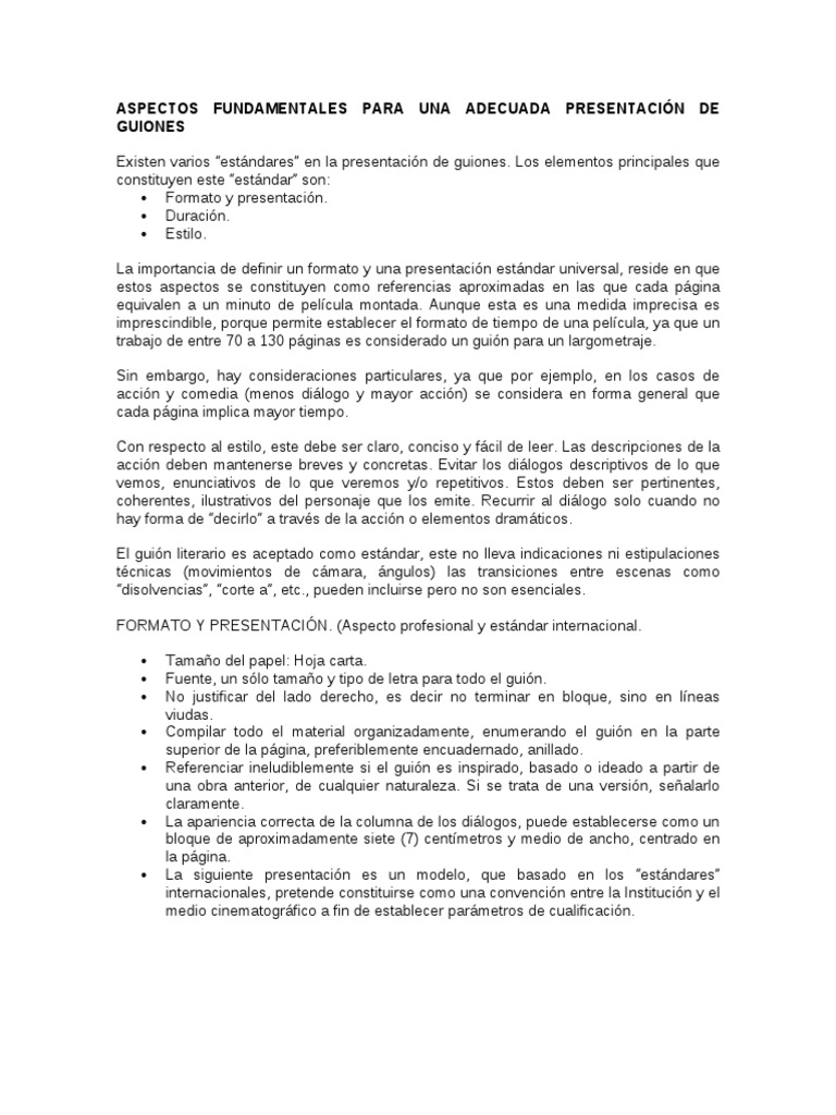 Para Aspectos Fundamentales Para Una Adecuada Presentacion De Guiones Guion Tecnologia General