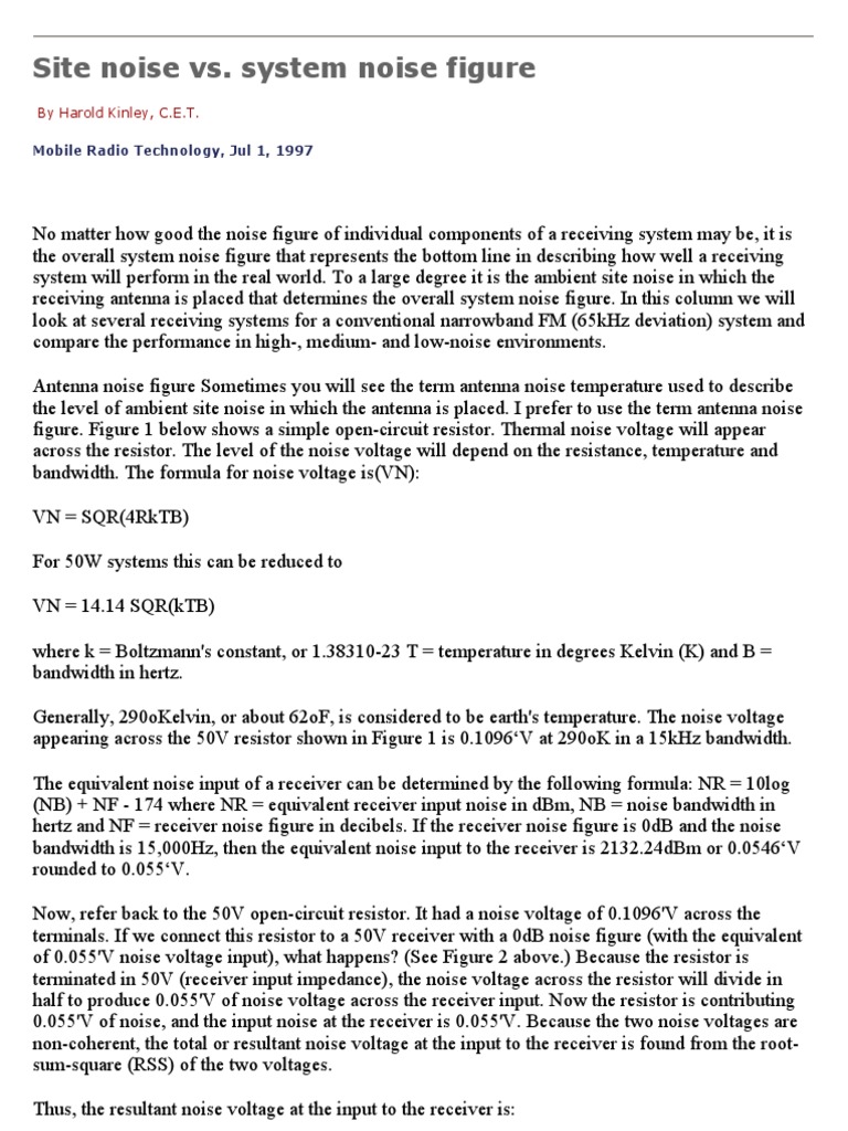 Harold Kinley Site Noise System Noise Figure | Antenna (Radio) | Decibel