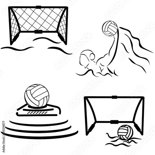 Water Polo Vector Image Gate Swimmer Ball Isolated On White Background Set Minimalistic Black Sign Emblem Or Logo For Swimming Pool Sports Shop Competition Ball In Gate Water Sport Label Wall Mural Anna